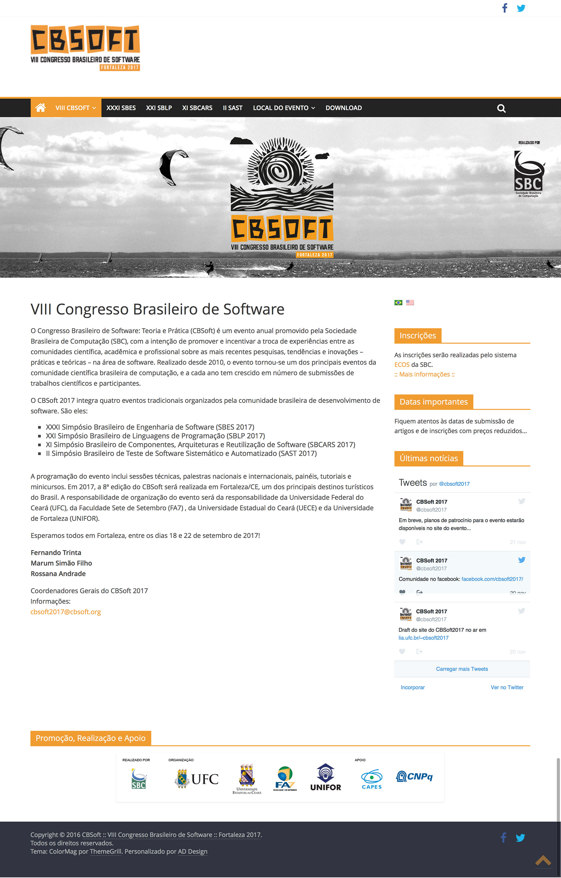 Criação de marca, programação visual e personalização de site para o VIII Congresso Brasileiro de Software, realizado pela SBC e organizado pela UFC, UECE, FA7 e UNIFOR.