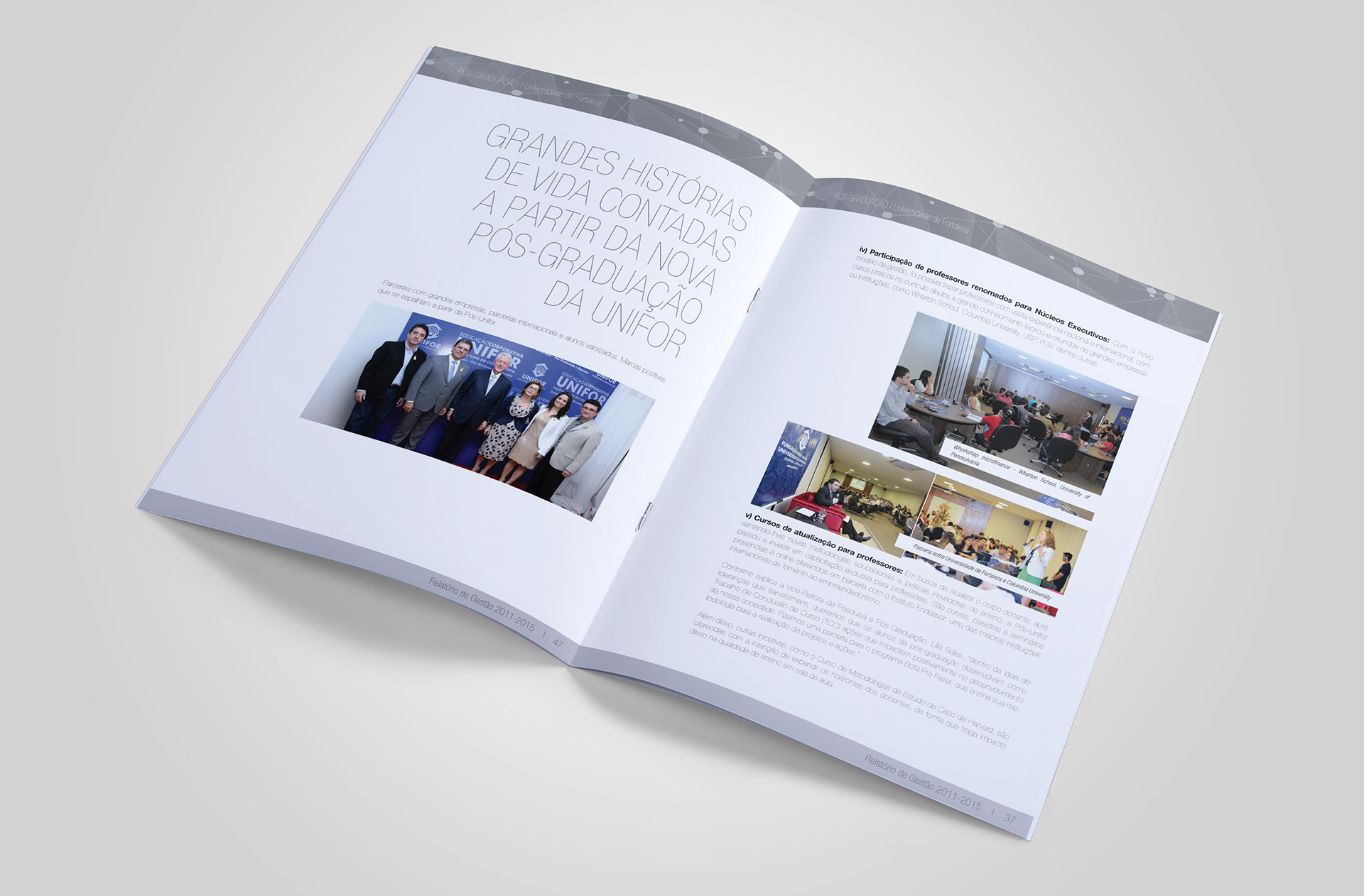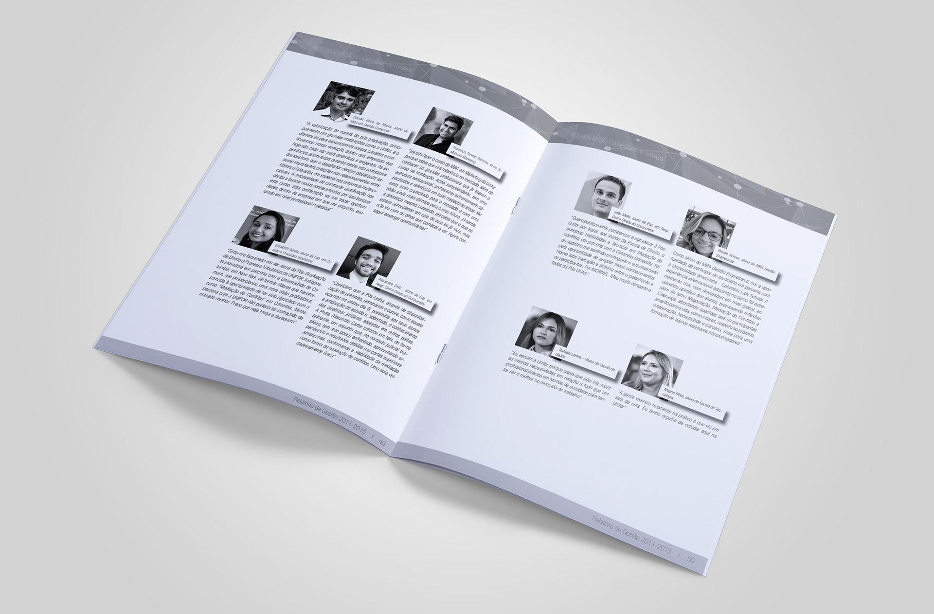 Projeto gráfico e diagramação de relatório para pós-graduação da Unifor.