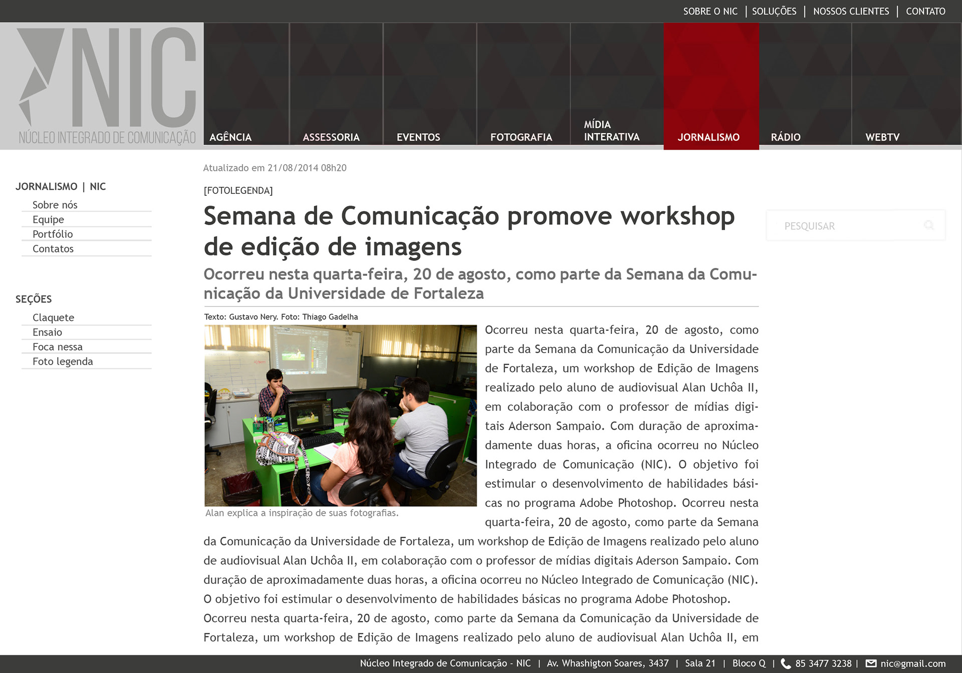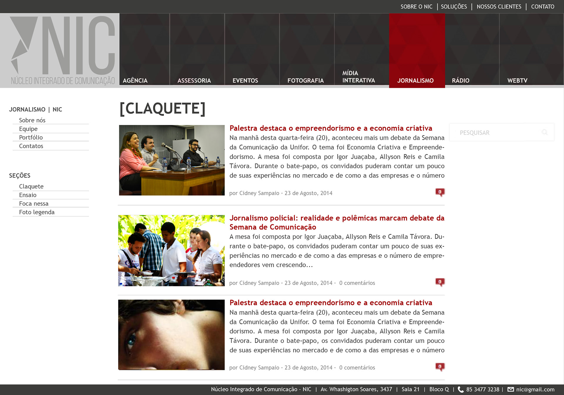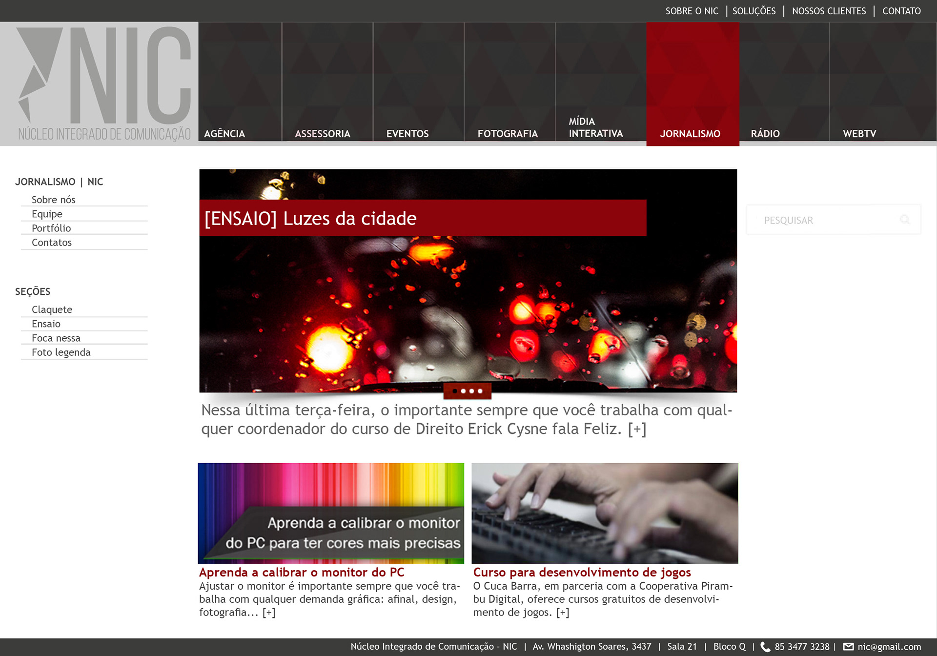 Desenvolvimento da arquitetura da informação e webdesign do portal do Núcleo Integrado de Comunicação da UNIFOR.