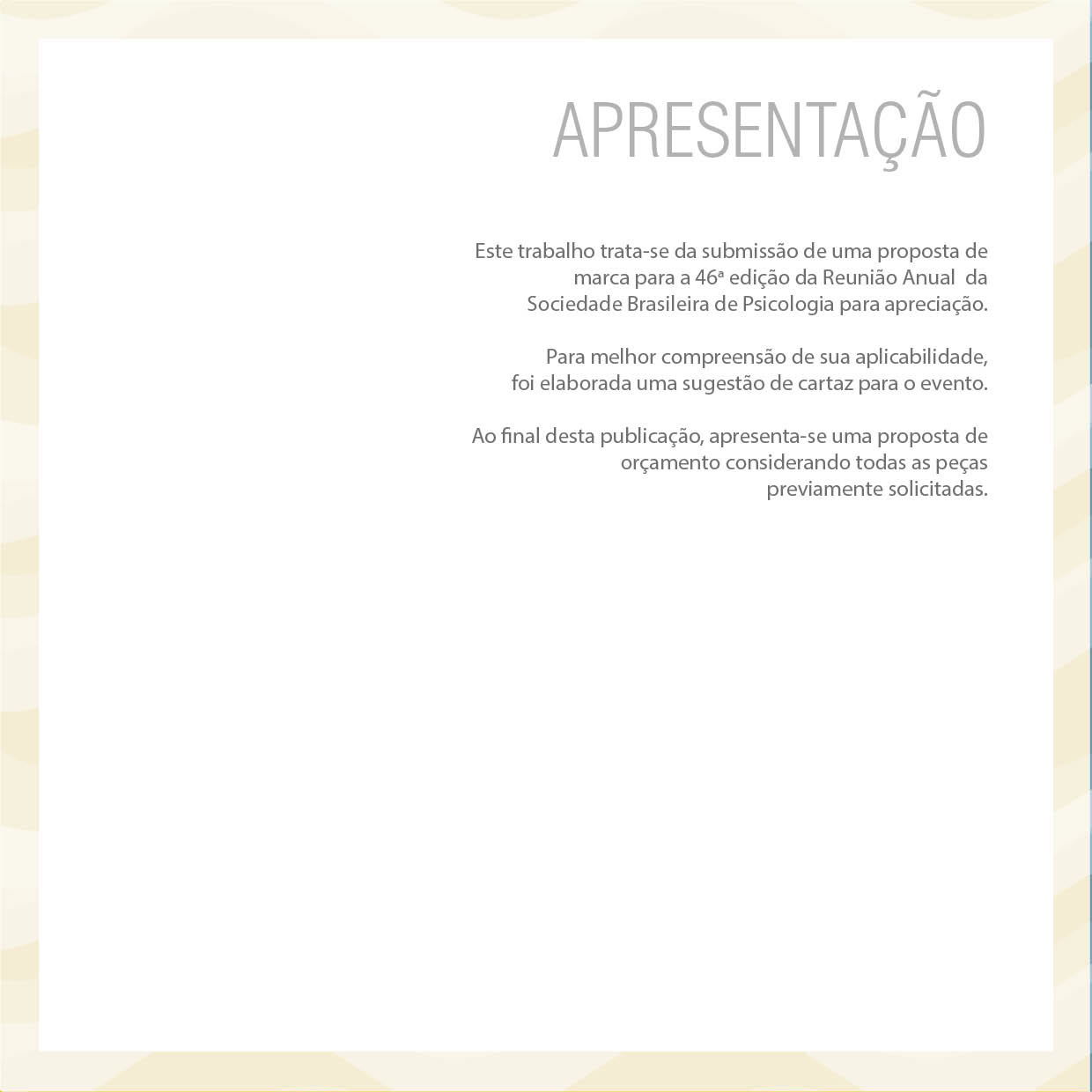 Este trabalho trata-se da submissão de uma proposta de marca e identidade visual para a 46a. edição da Reunião Anual da Sociedade Brasileira de Psicologia.